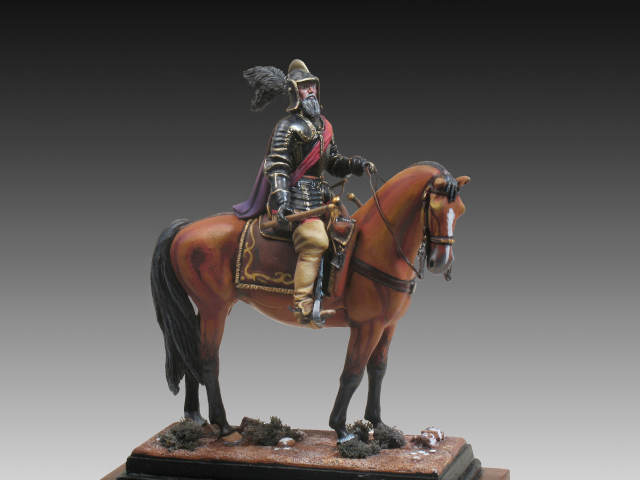 La figura situada en la batalla de Jodoigne, librada durante el mes de octubre de 1568, donde ya vemos al Duque de Alba con 61 años, mayor y de aspecto cansado al frente de las tropas españolas. Viste sobriamente. Junto con el bastón se toca con celada adornada con plumas, armadura sencilla, gregüescos y botas altas. Encima lleva un capotillo o copeta que le cubre parcialmente de los fríos otoños holandeses.